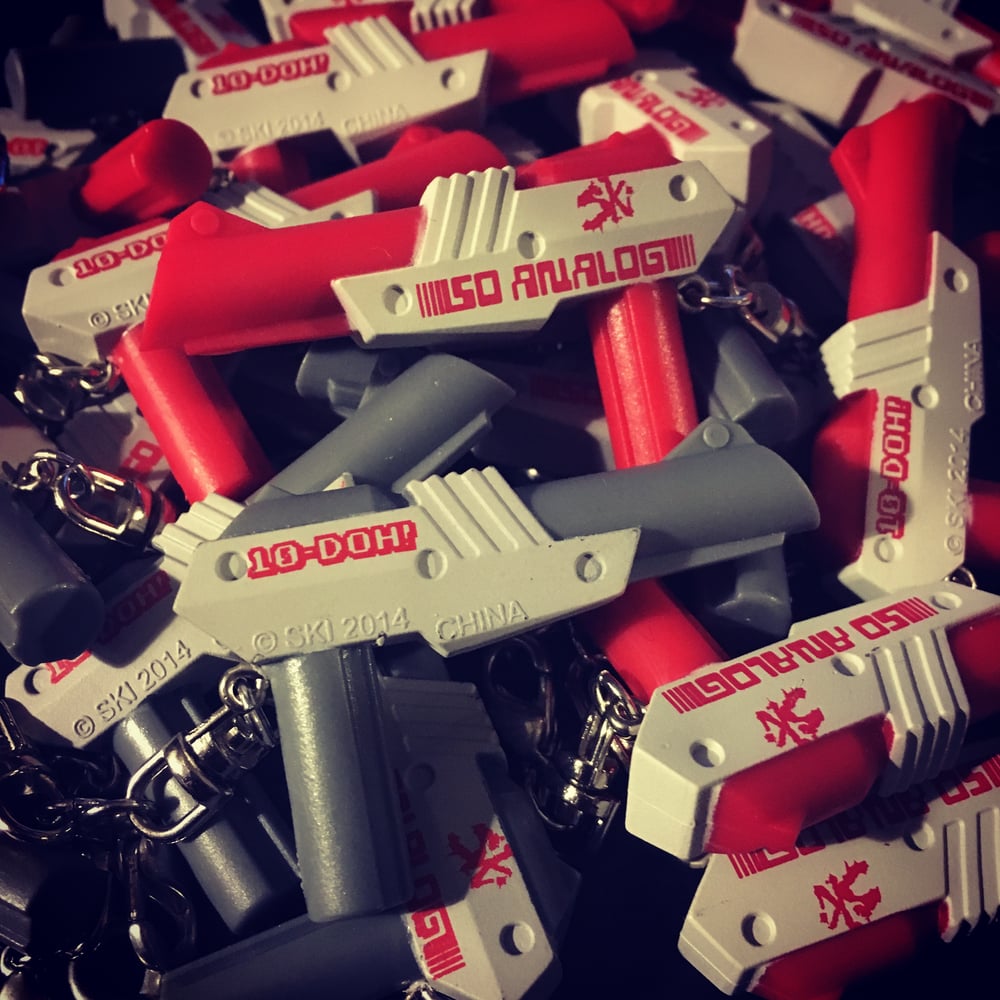 The Diecast keychains made in the USA. Made from the same model as the zapper that came with the Loot Crate Mini 10-Doh! figures.